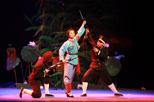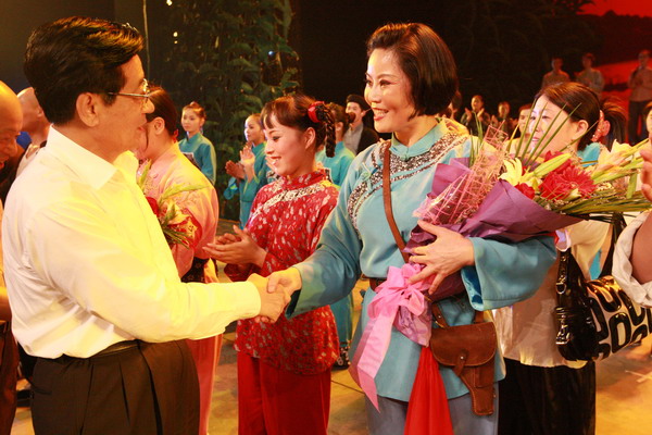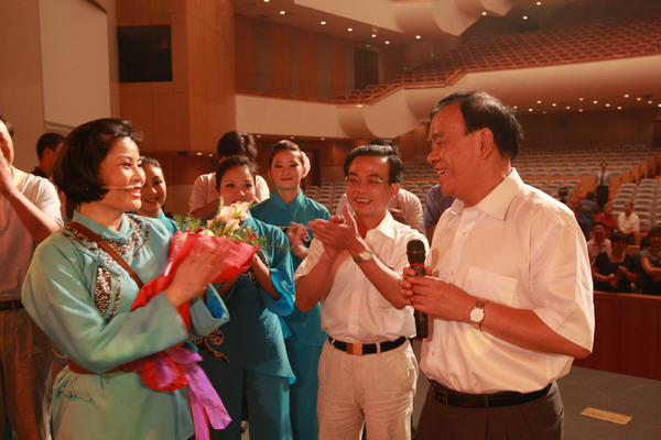 作为新中国成立六十周年的献礼歌剧,由国家一级演员、我校金永玲教授领衔的这部新版《洪湖赤卫队》,于9月8日、9日、10日三天在浙江省人民大会堂隆重献演,这是继《江姐》后金永玲艺术团推出的又一部红色经典歌剧。省委书记赵洪祝,省长吕祖善,省政协主席周国富,省委常委、秘书长李强,省委常委、省军区司令员王贺文,省委常委、宣传部长黄坤明,以及省老领导和省教育厅、文化厅等厅局领导先后亲临现场观看了演出,并表示祝贺。
