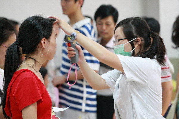 我校领导高度重视,在开学初就召开了有关甲型H1N1流感防控工作的紧急会议,对新生报到期间的防控措施和活动安排进行了研究部署。学生处专门为新生准备了防控甲型H1N1流感的告知书,并群发短信进行温馨提示。报到当天,学校在汽车东站、火车东站和城站火车站等迎新接待点分别设立了体温测量点,同时在校内万人体育场、家长休息室等处设立了四个体温测量点,对新生及陪同人员进行体温测量。体温正常的新生,可以继续下一个报到程序;而体温异常的新生,则移交校医务室进行进一步确认并采取相应的措施。
