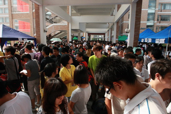 此外,在熙熙攘攘的新生报到队伍中,活跃着一批着装统一的志愿者服务队。他们或是指引新生到所在学院办理相关手续,或是陪同家长到休息室小憩,或是帮助新生搬运行李、带领新生入住公寓。这批志愿者细致周到的服务,让新生及家长们体会到了温馨和谐的校园氛围和集体的温暖。