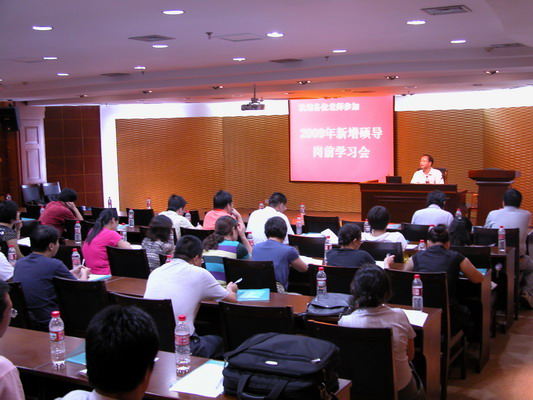 8月27日,2009年新增硕士生导师岗前学习会在行政楼一楼报告厅举行。副校长朱泽飞教授出席会议并讲话。研究生部负责人、新增硕士生导师、各学院研究生秘书和研究生工作有关人员等60余人参加了会议。