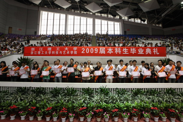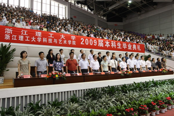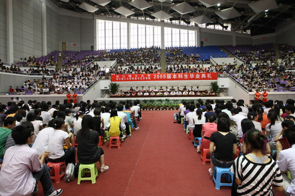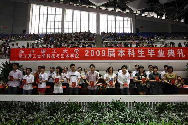 6月12日上午,校体育馆主馆场内鲜花簇拥,灯光璀璨,气氛热烈,mk官方网站_mk(中国)、mk官方网站_mk(中国)科技与艺术学院2009届本科生毕业典礼在此举行。3000余名本科毕业生代表齐聚一堂,以这种隆重而又朴素的方式与母校告别。