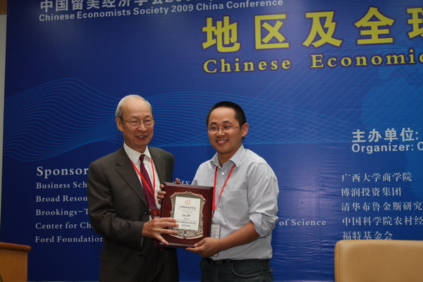 本次年会于6月12-15日在广西大学举办,诺贝尔经济学奖得主詹姆斯•莫里斯教授(James Mirrlees)和邹至庄教授均到会并发表主旨演讲。在本次会议上,魏楚提交的论文“An Empirical Analysis of Provincial Energy Efficiency in China”得到了邹至庄的亲自点评及颁奖。该文是对中国各省能源效率的实证分析,对于理解我国不同地区的节能潜力与节能政策提供了新的视野和依据。该文同时还将于6月24日在阿姆斯特丹举办的欧洲环境与资源经济学年会(European Association of Environmental and Resource Economists)上进行宣读。