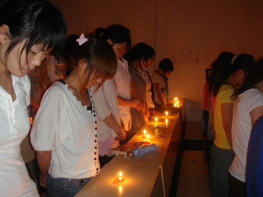 成教学生点燃蜡烛默哀