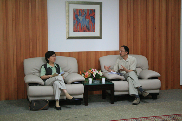 史永安从解放思想大讨论、“三百三千工程”、学习实践活动的宣传报道等方面向指导检查组作了汇报,介绍了学校正在开展的第二阶段的工作布置和进展情况。