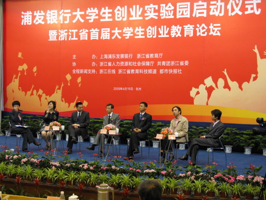 4月16日下午,由浦发银行和浙江省教育厅主办,浙江省人力资源和社会保障厅、共青团浙江省委协办的“浦发银行大学生创业实验园”启动仪式暨浙江省首届大学生创业论坛在省人民大会堂隆重举行。