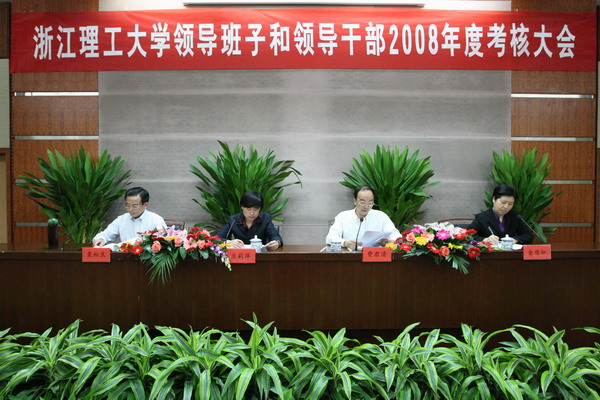4月14日下午,校领导班子和领导干部2008年度考核大会在行政楼二楼报告厅举行。省委组织部干部三处副处长、调研员庄莉萍,省委教育工委干部处干部蓝邓骏,校领导班子成员,部分老领导,全体现职处级干部,民主党派负责人,教代会代表团正、副团长,部分教授等出席大会,大会由党委副书记金瑾如主持。