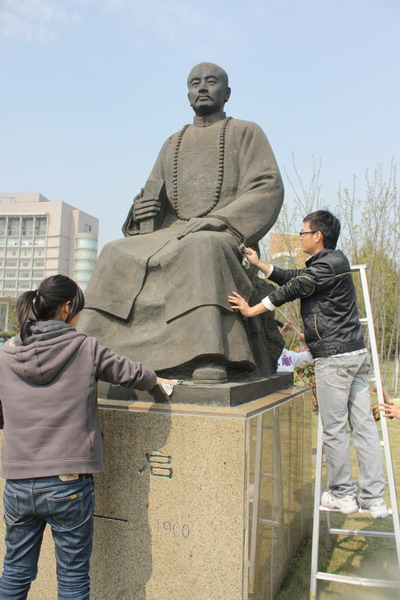 学校校友工作志愿者协会组织了以“缅怀先驱,你我先行”为主题的祭奠理工名人活动。对我校创始人林启、“报业巨子”史量才以及原浙江丝绸工学院(我校前身)院长朱新予的塑像进行了精心清理。同学们怀着景仰的心情,以实际行动缅怀故者,向他们致以崇高的敬意。