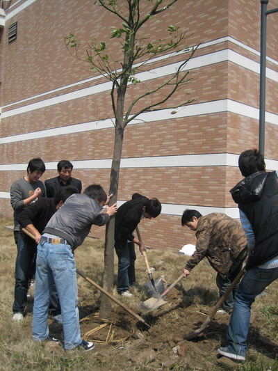 校文化遗产保护协会开展了“情系清明——亲植香樟寄哀思”活动。来自文化遗产保护协会、建工学院学生会、建工学院社团管委会的近40多名同学,在学校17号楼西侧草坪植下了五棵香樟,以文明、绿色的方式向“5•12”遇难同胞表达了自己的哀思。据悉,此前校文化遗产保护协会还举办了“情系清明,走进‘非遗’——中国传统节日宣传活动”,通过知识竞答、图片展等形式,宣传中国传统节日,呼吁大家积极保护中国的传统文化。