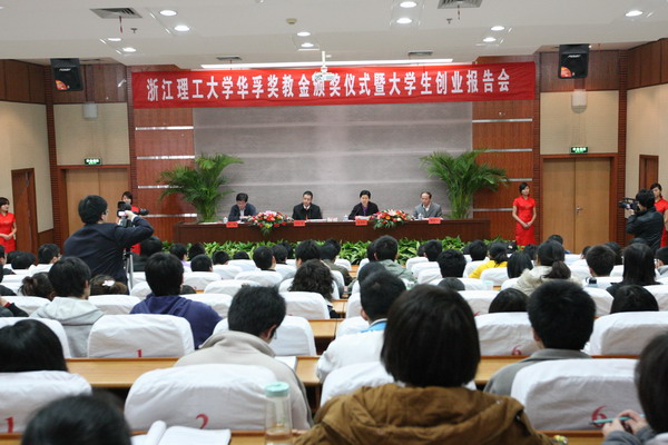 3月25日下午,华孚奖教金颁奖仪式暨大学生就业与创业报告会在我校行政楼二楼报告厅举行。华孚色纺股份有限公司董事长孙伟挺、校党委副书记金瑾如、党委委员陈文兴出席会议。会议由校党委副书记程刚主持。