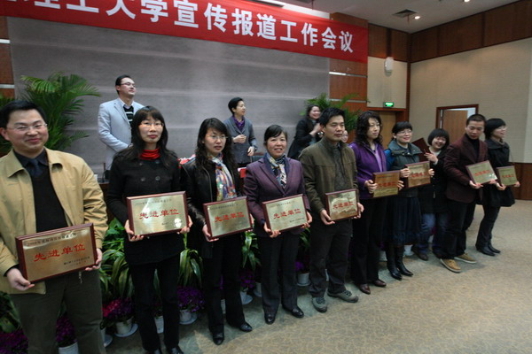 会议表彰了上一年度校内宣传报道工作先进单位、对外宣传报道工作先进单位、对外宣传报道工作先进个人、优秀教师通讯员、优秀学生记者、校报庆祝改革开放三十周年主题征文获奖者,主席台就座领导一一为受表彰的集体和个人颁发了奖牌、荣誉证书。