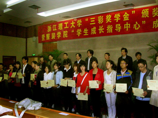 据了解,我校“三彩教育奖”自2001年起由卓尚服饰(杭州)有限公司(前身为浙江三彩服饰有限公司)设立。2005年,卓尚公司开始与服装学院合作建立教学实习基地。此外,公司还为学院学生提供了试衣模特、日常管理、设计师助理、打版师助理等勤工助学岗位。截止2009年3月,公司从学院累计招聘毕业生100余人,特别是在去年年底全球金融危机的背景下,公司一期从学院招聘毕业生15人,并提高了奖学金额。