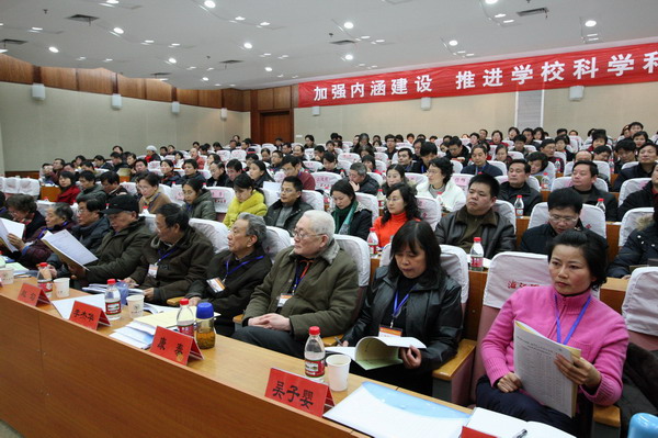 1月4日下午,大会在行政楼二楼报告厅开幕,校工会常务副主席胡莹主持会议。校长裘松良作题为《加强内涵建设 推进学校科学和谐发展》的工作报告,报告全面总结了一届二次双代会以来学校的发展情况,肯定了取得的成绩,指出了存在的问题,分析了面临的形势,部署了今后的工作。他说,2008年是学校发展关键而又曲折的一年。学校坚持以人才培养为根本任务,教育教学质量稳步提高;强化学科建设与科学研究,科技创新能力又有增强;深入实施人才强校战略,师资队伍建设成效明显;坚持开放办学,对外交流与合作进一步扩大;加强管理和保障体系建设,管理水平和服务保障能力稳步提高;坚持立德树人,德育工作进一步加强。在充分肯定成绩的同时,他也指出,我们必须保持清醒的头脑,深入分析学校发展过程中存在的困难和问题,主动应对时局,以校院两级管理体制和运行机制及人事分配制度改革为契机,促进学校内涵建设,并最终推进学校科学发展。他相信通过全体教职员工团结一心,群策群力,和谐校园的建设必将结出丰硕的成果。
