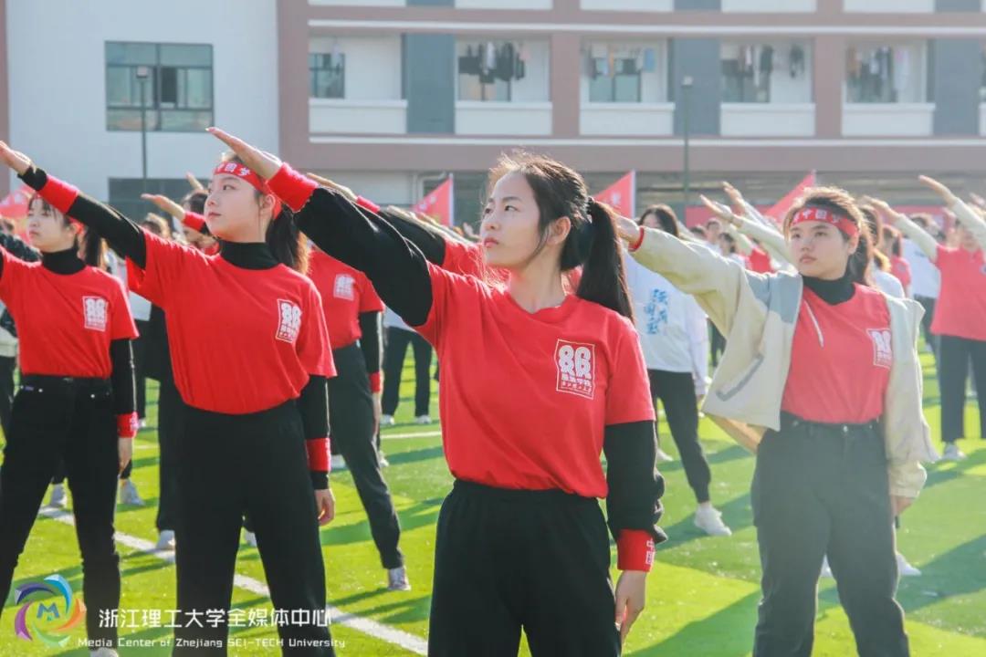 随后,团体操比赛开始,在激昂澎湃的《没有共产党就没有新中国》歌声中,身着各色鲜艳服装的同学们动作整齐,精神饱满,舞出自我的风采,跳出青春的活力。最终,团体操比赛在响亮的“请党放心、强国有我”口号声中落幕,彰显了我校学子激情昂扬的斗志和爱国爱党之情。