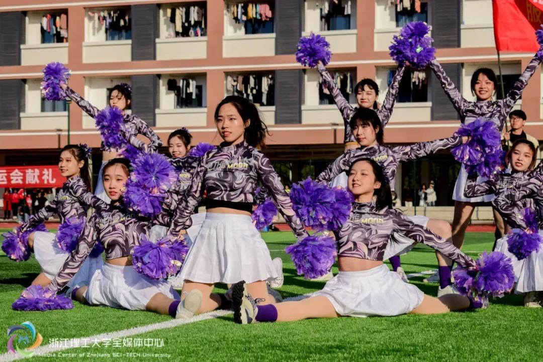 在运动会比赛的间隙,各学院啦啦操队员们为大家献上多场精彩的表演,用动感十足的啦啦操表演,为运动员加油助威,让观众们激动兴奋。她们挥舞手臂,跳跃转身,将赛场的气氛点燃;她们极富节奏感的舞步,飞扬悦动的舞姿,活泼可爱的笑颜,感染着运动场上的每一个人。