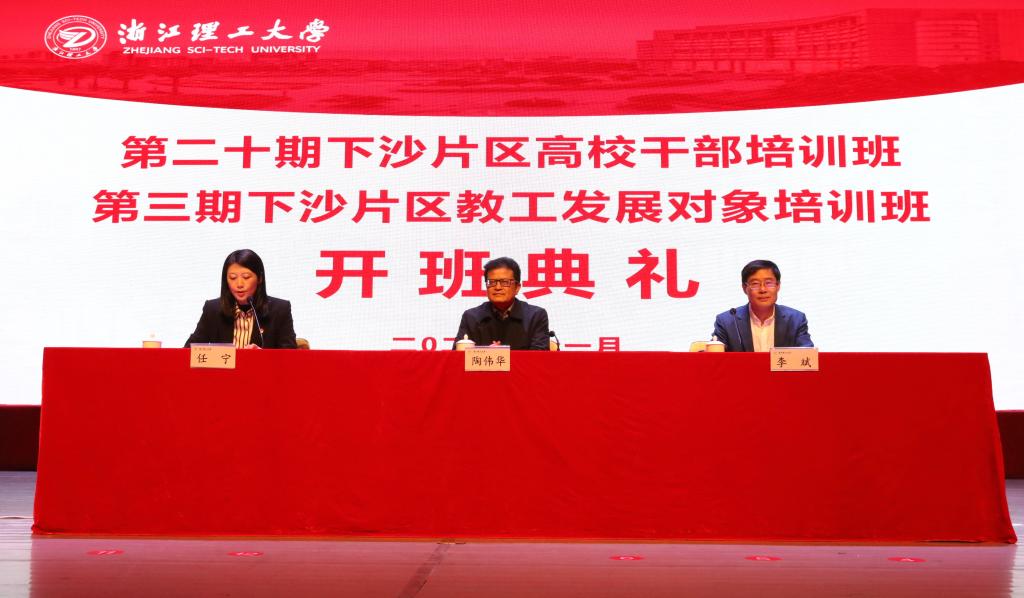 为全面贯彻习近平新时代中国特色社会主义思想,深入学习贯彻党的十九届六中全会精神,弘扬党的优良传统和作风,推进干部队伍干部工作系统性重塑,增强党组织的凝聚力和战斗力,在省教育厅的指导下,11月15日至19日,我校承办了第二十期下沙片区高校干部联合培训班、第三期下沙片区教工发展对象联合培训班。来自下沙片区14所高校的100余名党务干部、8所高校的40余名教工发展对象参加了培训。校党委副书记陶伟华、省教育厅组织处二级调研员李斌出席开班典礼。