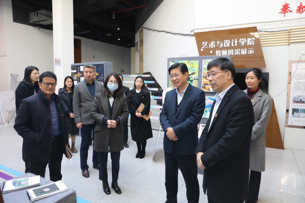 会前,mk官方网站_mk(中国)党委书记吴锋民会见了干武东一行,并一同参观了艺术与设计学院“党建引领——助力共同富裕”创意工坊作品展。