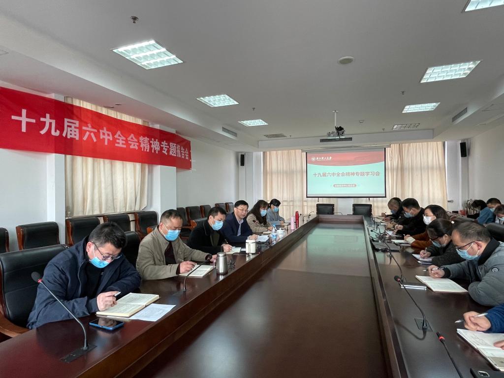 12月9日下午,副校长王剑俊来到后勤服务中心党总支,宣讲党的十九届六中全会精神。后勤服务中心全体党员参加了宣讲会。