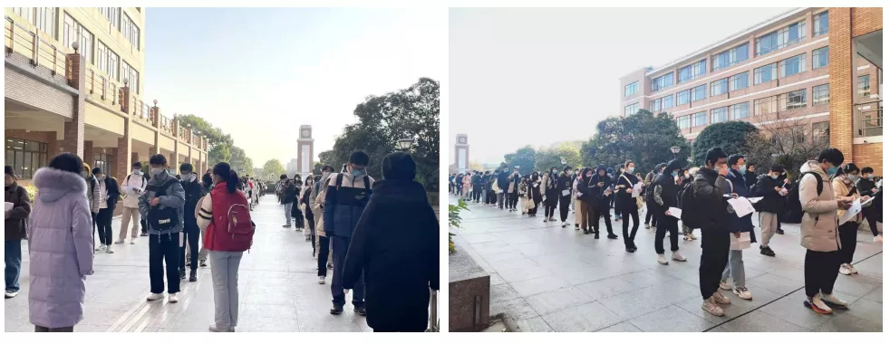从进入校门起,考试工作人员和志愿者全程护航,服务考生。严格遵守疫情防控要求,引导考生们进入相应考场。校门安排专人核对考生考前14天的《考生健康申报表》、健康码、行程码以及部分需要提供核酸考生的核酸检测报告;考区入口处设置测温亮码点,对所有考生进行亮码、测温正常后方可进入,确保防疫相关规定落实到位。