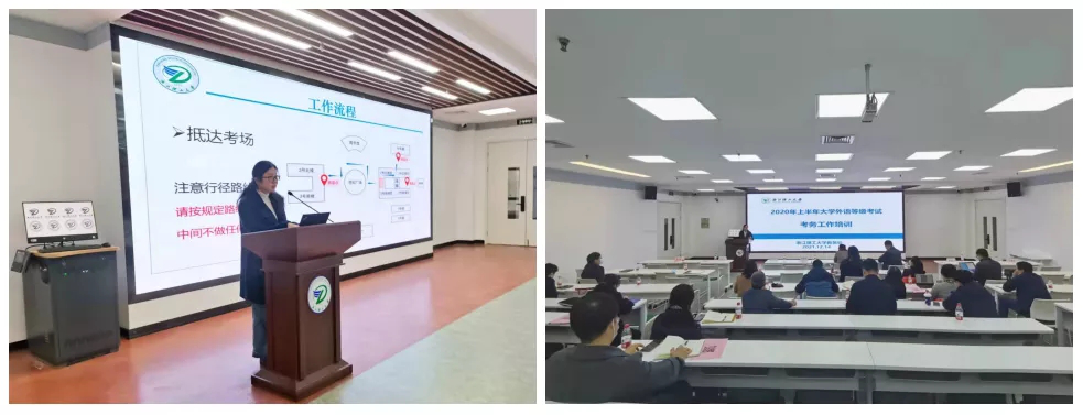 学校对考务工作纪律严格要求,精心组织,不断提高考试管理和服务水平,并由教务处牵头召开考前准备工作会、监考工作培训会等会议,分层分类明确任务、细化流程、优化方案。12月18日早晨,按照疫情防控要求,分八个分会场,线上线下结合的方式组织召开了考务工作培训会,向所有监考老师明确了工作流程、操作规程、注意事项等要点。各部门严格落实疫情防控要求和考务工作流程,考前进行了疫情防控应急演练,全面保障考试安全有序进行。