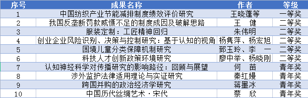 2021年12月15日,省政府发文公布(浙政发【2021】40号),浙江省第二十一届哲学社会科学优秀成果奖评选结果揭晓,我校共10项科研成果获奖,创历史新高,其中一等奖1项,二等奖5项,青年奖4项。王晓蓬等的著作《中国纺织产业节能减排制度绩效评价研究》(中国社会科学出版社)获得应用对策研究与科普优秀成果奖一等奖。