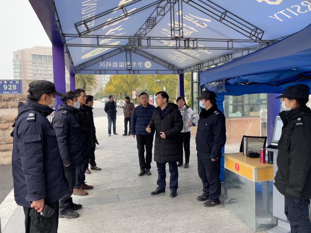 王剑俊一行先后来到学校南门、2号教学楼、信息技术中心、桂花园餐厅、生活一区学生宿舍等地,重点对校园疫情防控、环境卫生、安全隐患、开学前教学及学生生活保障等情况进行了全面检查。他认真听取了相关负责人的工作汇报,对新学期开学各项准备工作给予了肯定。