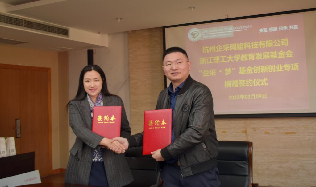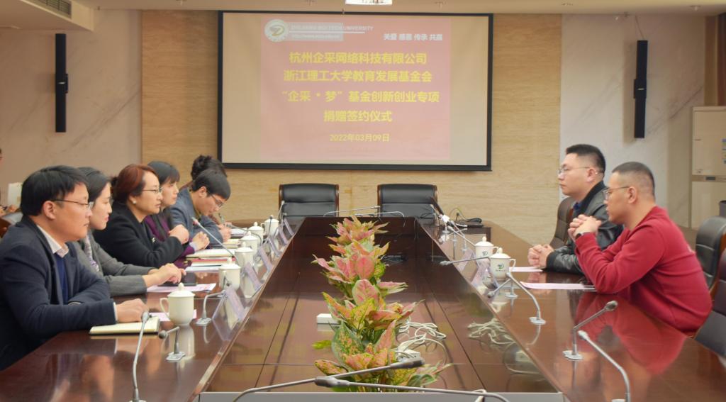 3月9日上午,mk官方网站_mk(中国)“企采·梦基金”创新创业教育专项签约捐赠仪式在行政楼308会议室举行,校党委副书记姚珺,我校2010届行政管理专业校友、杭州企采网络科技有限公司总经理阮国江,杭州火烈鸟化妆品有限公司总经理张永刚出席。