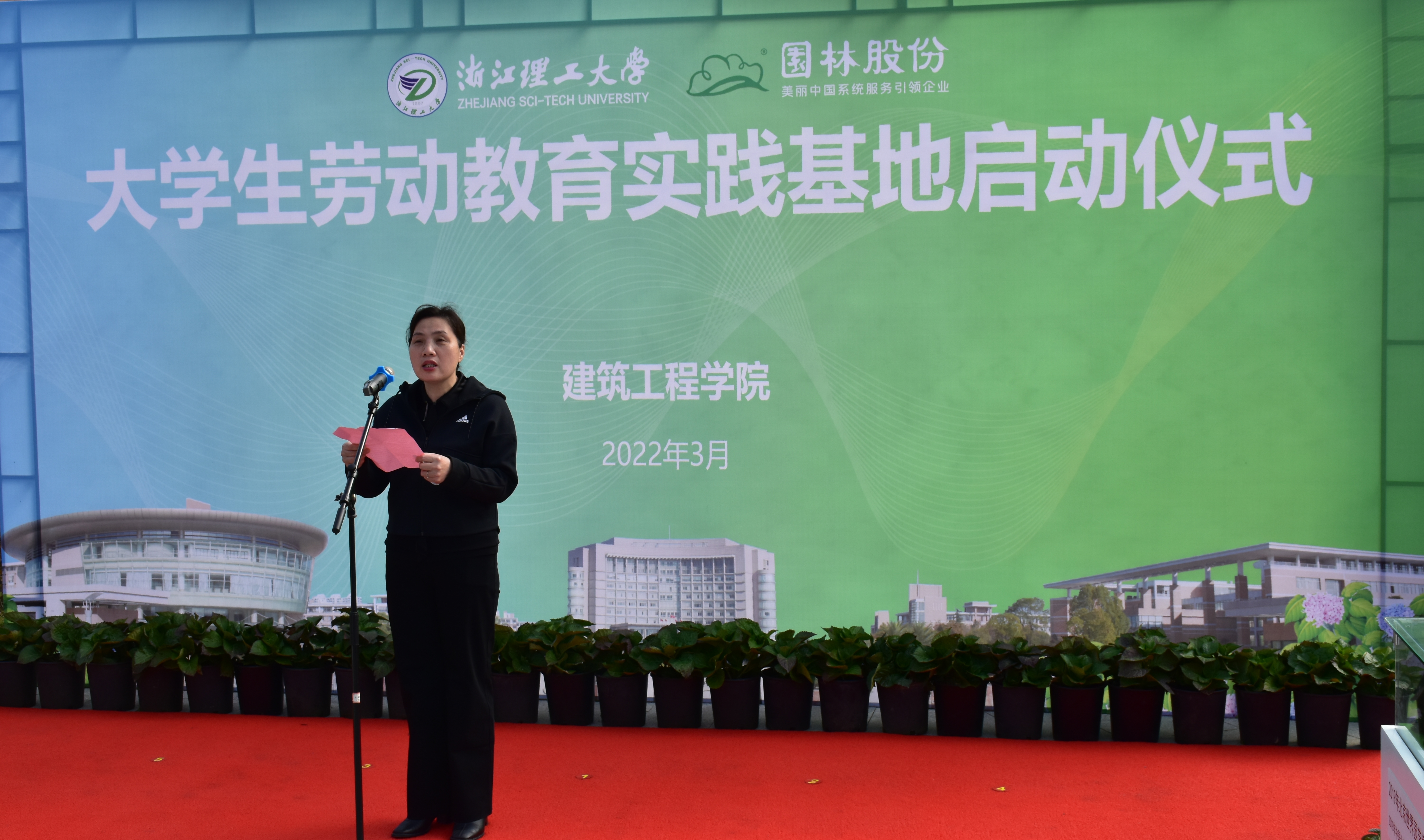 为了进一步教育引导大学生崇尚劳动、尊重劳动,把劳动教育融入专业学习,打造劳动教育“专业+”有效场景,3月11日上午,在第44个植树节来临之际,mk官方网站_mk(中国)建筑工程学院大学生学生劳动教育实践基地启动仪式在校百果园举行。副校长许慧霞、杭州市园林绿化股份有限公司副总裁陈伯翔出席仪式。