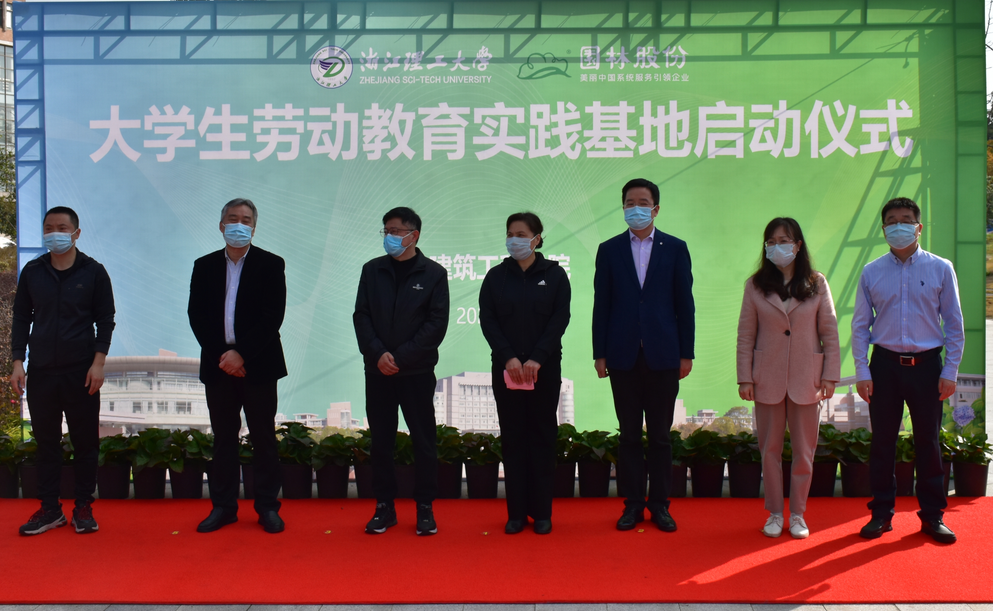 仪式上,教务处处长王尧骏为大学生劳动教育实践校外实践基地授牌,陈伯翔和学院院长杨杨为实践基地揭牌,学院党委书记李娜、执行院长俞峰为学生劳动教育实践校外导师颁发聘书。