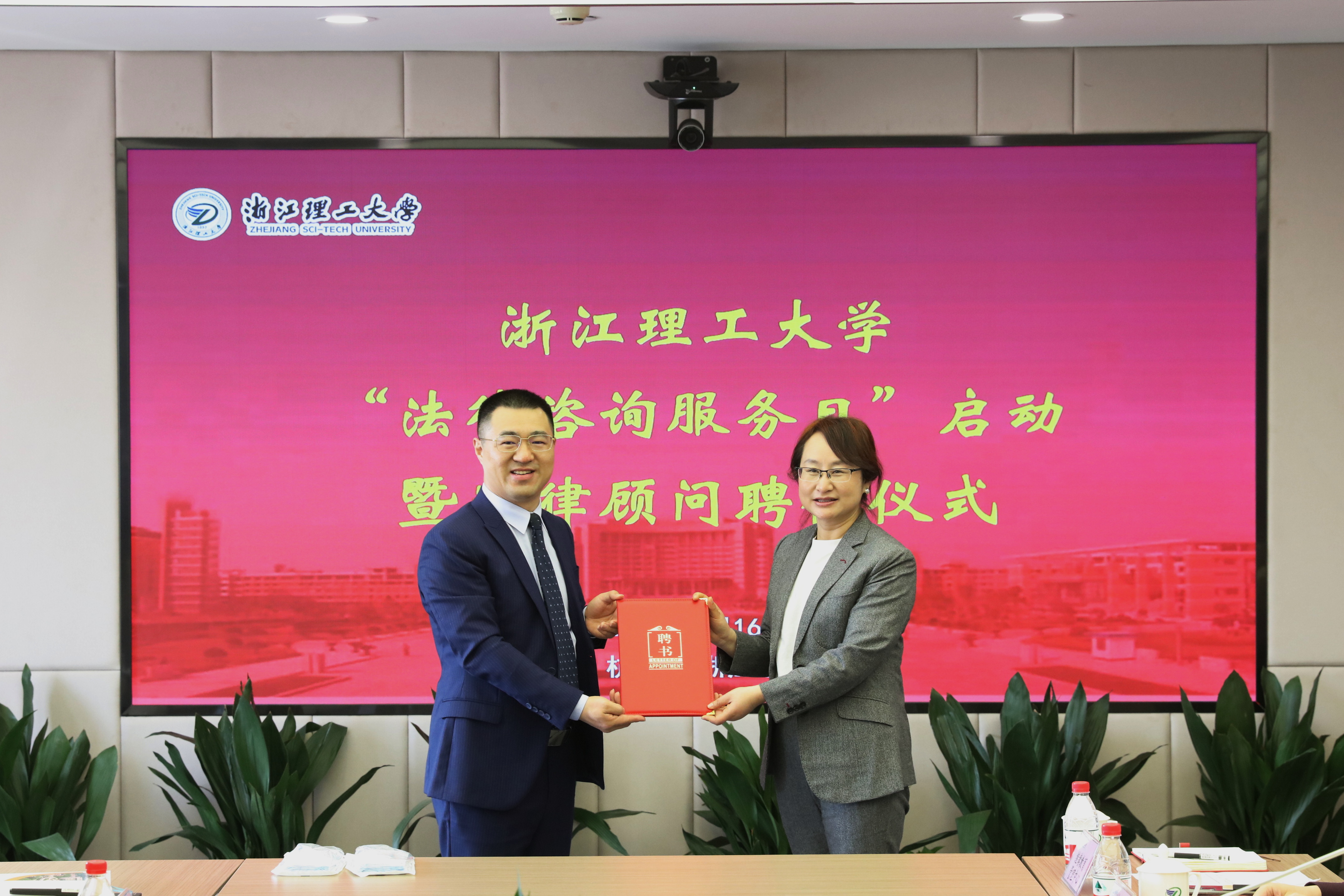 姚珺向学校法律顾问和首批法治工作联络员颁发聘书。她代表学校向法律顾问陈金峰律师团队为学校法治工作作出的贡献表示感谢,希望通过“法律咨询服务日”等载体,搭建学校与顾问律师团队便捷沟通交流的桥梁,为教职员工提供更加深入的法律服务。