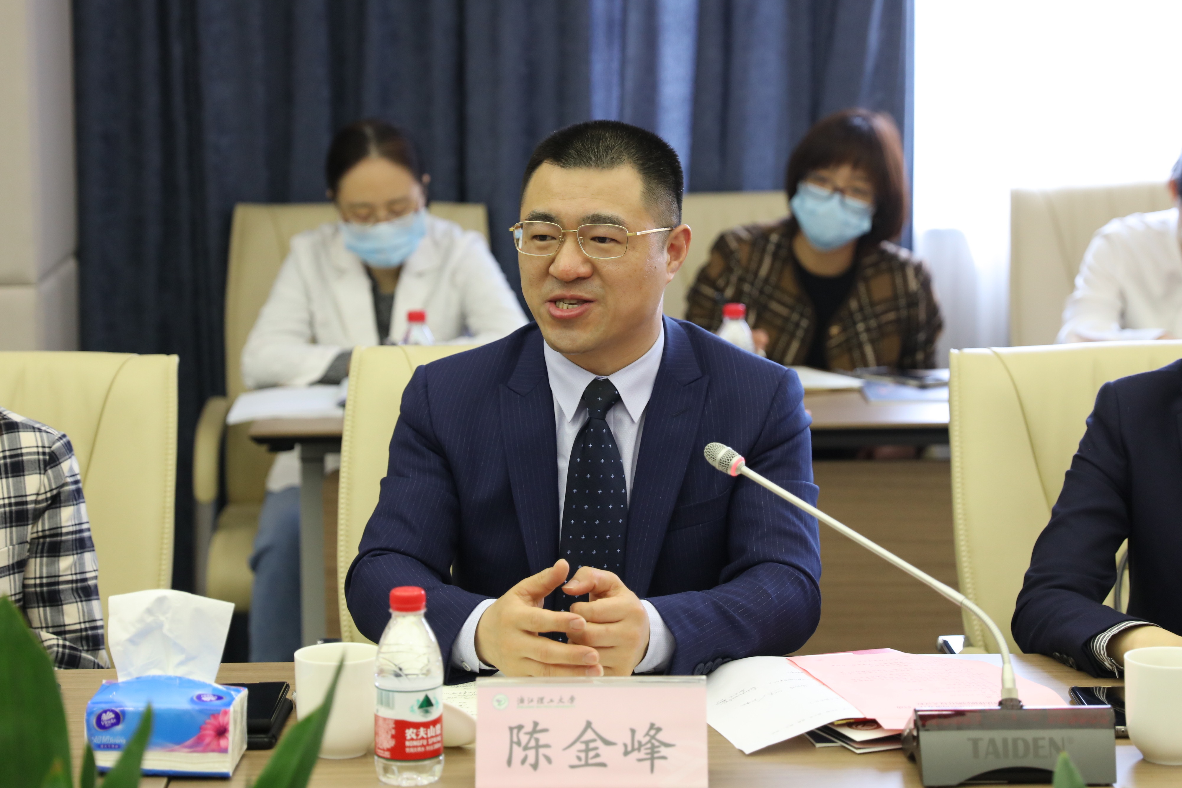 陈金峰代表法律顾问团队发言。他对学校的信任表示感谢,表示将带领团队律师以实际努力回应师生期待。一是不断加强专业能力建设,在高校涉法事务领域不断学习精进。二是以“法律咨询服务日”为基础,常态化开展法律咨询服务,做到有呼必应。三是开展规范性文件制度、工作流程的合法合规性提升服务,分阶段上门走访相关部门单位,进行“把脉问诊”。