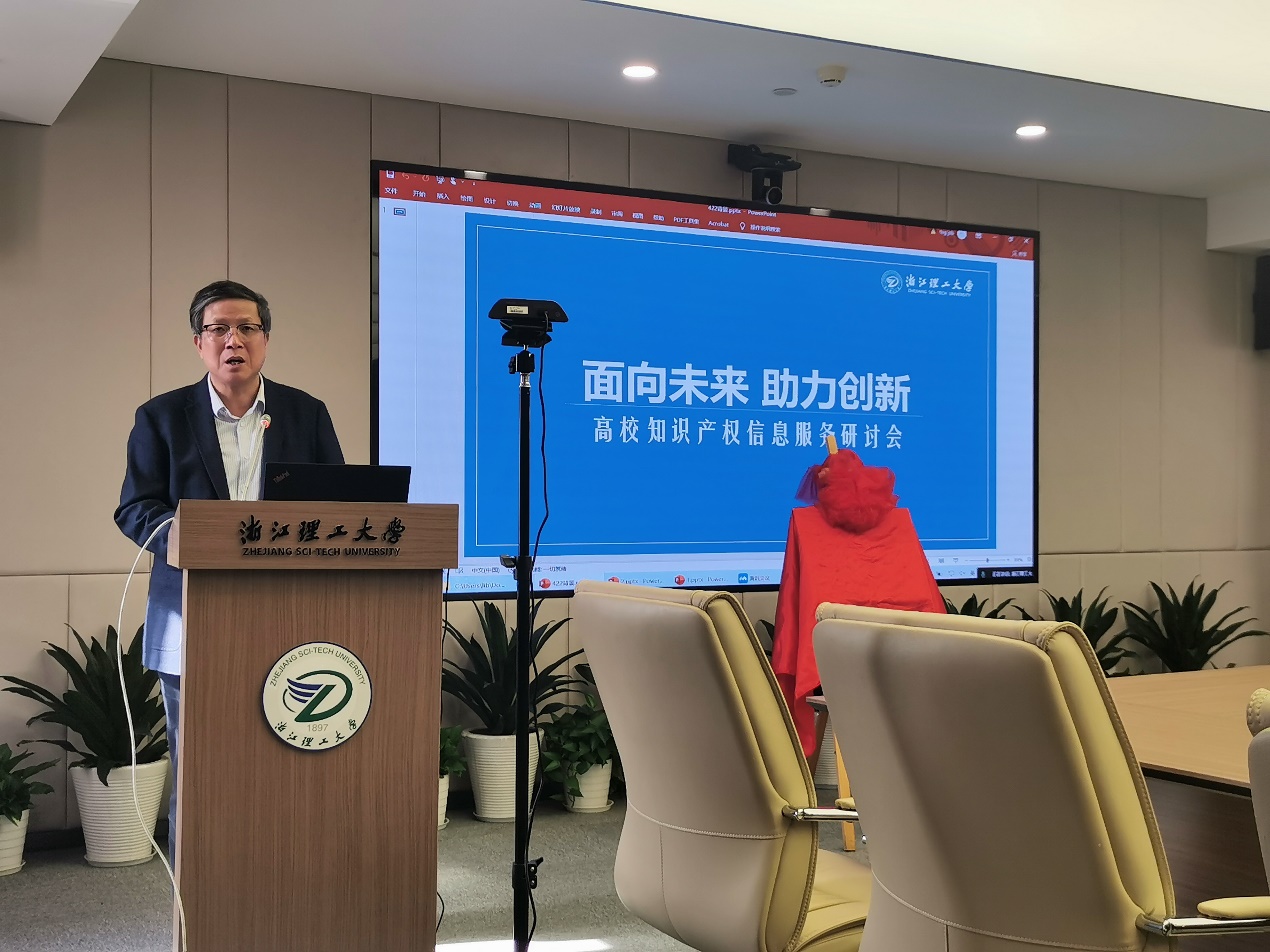 陈文华致辞。他介绍了学校近年深化知识产权管理体制机制改革的一系列举措,包括从顶层设计上加强对知识产权运营和科技成果转移转化的统一管理;构建了“五位一体”知识产权运营体系;入选第三批高校国家知识产权信息服务中心;率先择优遴选了175件具有市场应用价值的发明专利,着力推动成果向山区26县精准转移转化等。他强调,本次活动旨在加强专利信息分析人才队伍培养,进一步提升浙江地区高校、科研院所知识产权创造、运用、保护的管理能力与服务水平。