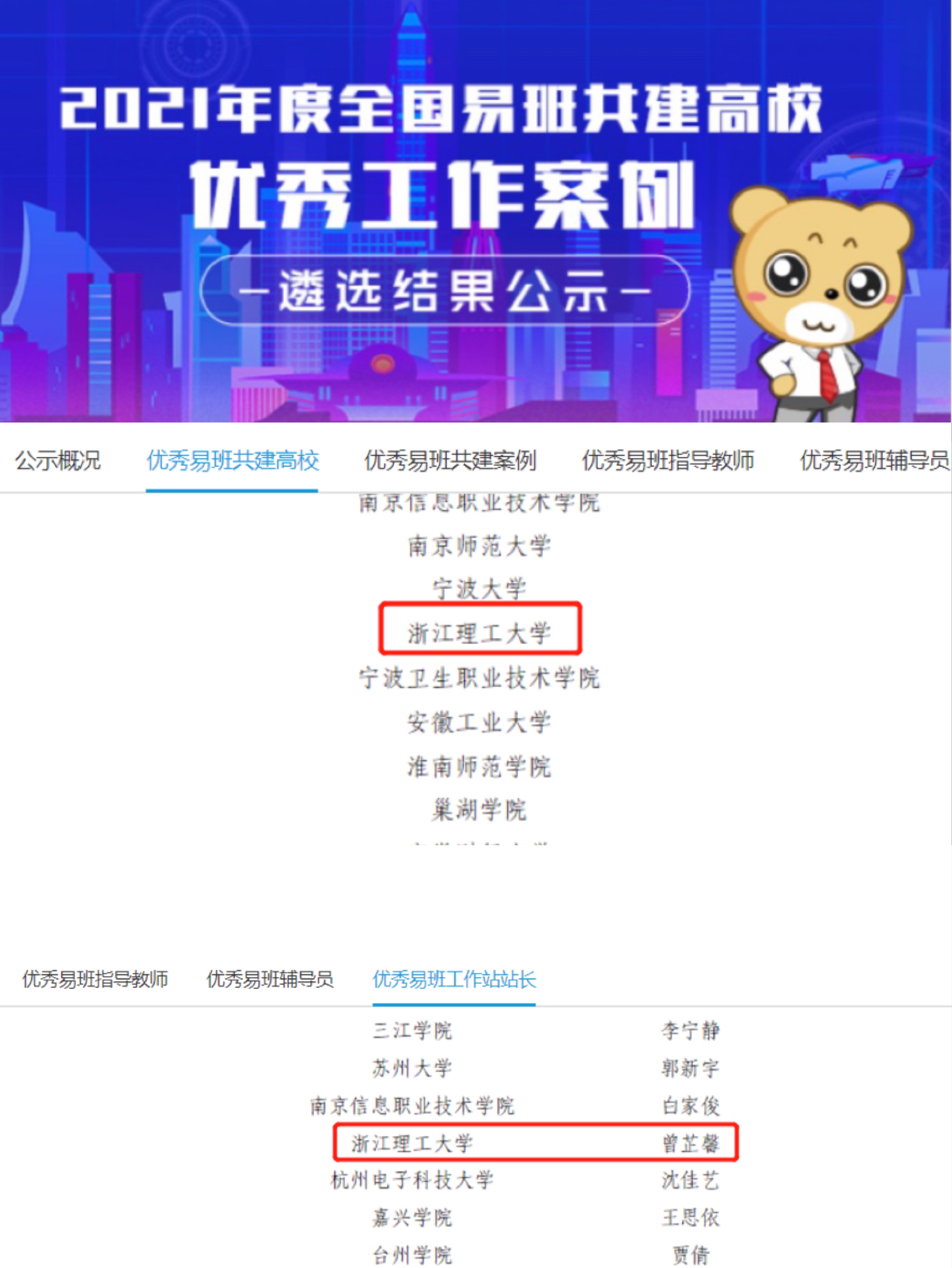 近日,教育部易班发展中心开展的2021年度全国易班共建高校优秀工作案例遴选工作落下帷幕,我校入选“优秀易班共建高校”,校易班工作站站长曾芷馨入选“优秀易班工作站站长”。这是我校继2020年入选“优秀易班工作案例”后的又一喜报。