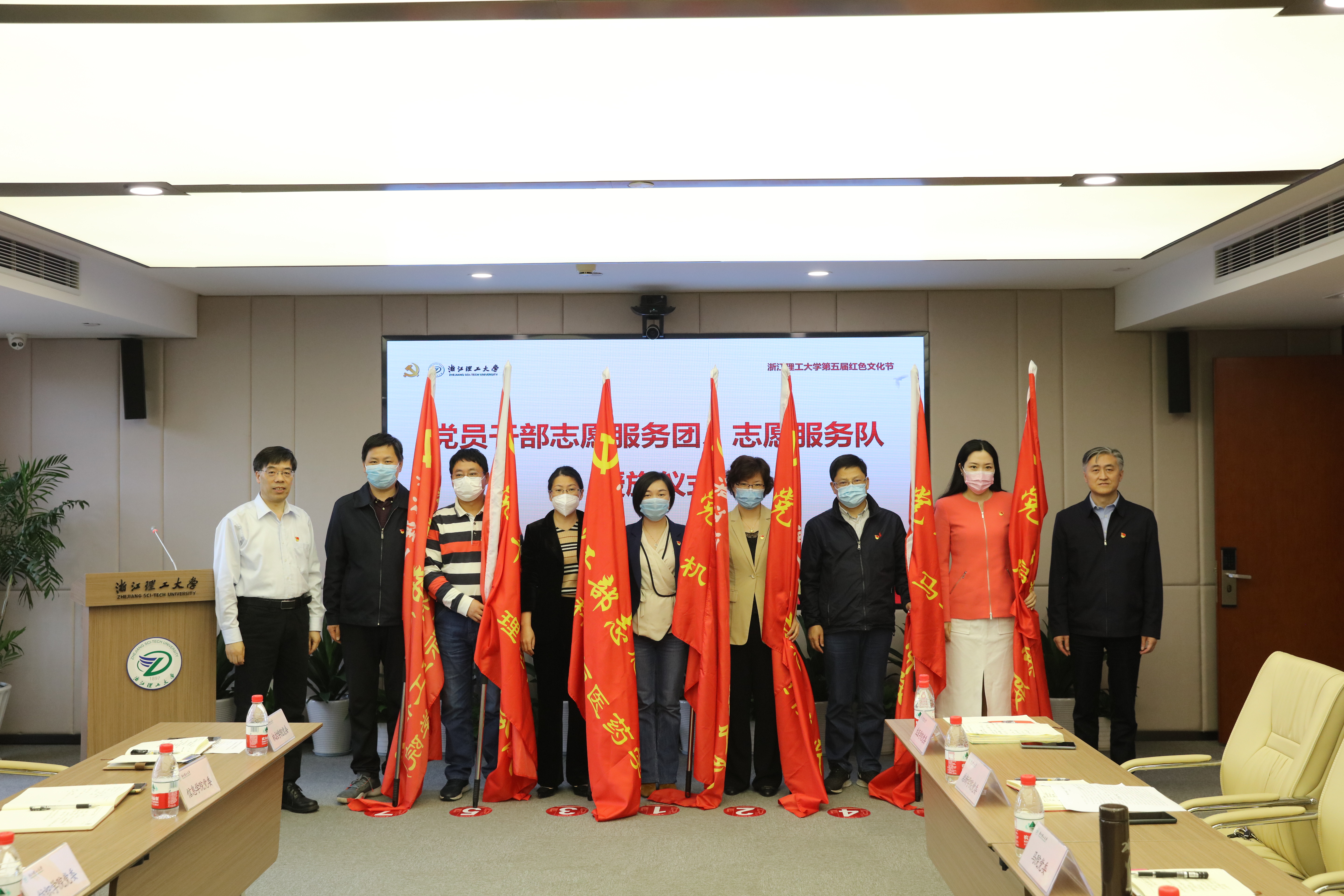 吴锋民和陈正奎为党员干部志愿服务团队授旗。当前疫情形势严峻复杂,为坚决贯彻中央和省委疫情防控决策部署,按照学校党委的部署要求,扎实推进《mk官方网站_mk(中国)疫情防控党员干部志愿服务快速响应方案》,党委组织部面向全校党员干部开展抗疫志愿服务的招募,组建了1个党员干部抗疫志愿服务团,5支校级党员干部抗疫志愿服务队、18支院级党员干部抗疫志愿服务队,充分发挥党组织战斗堡垒作用和党员同志先锋模范作用。