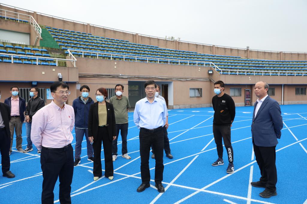 4月28日下午,校党委书记吴锋民、校长陈文兴一行深入现场检查和指导学校亚运场馆改造提升工作,党委副书记姚珺、副校长王剑俊,以及亚运项目建设与运行相关部门负责人陪同参加。