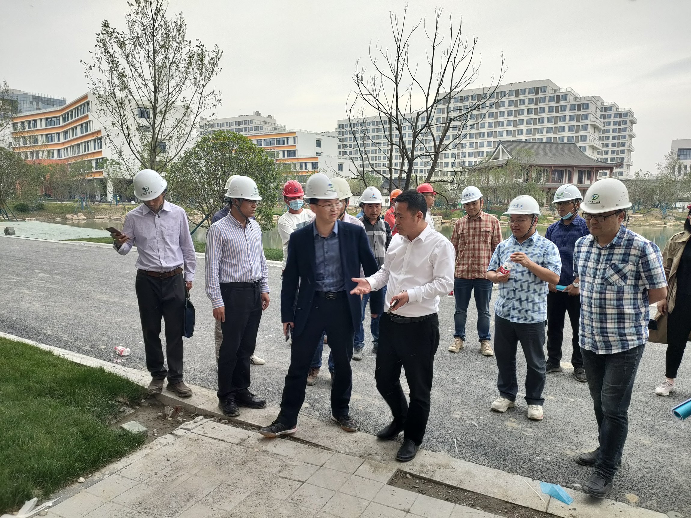 王剑俊一行实地考察了临平校区(时尚学院)公共教学楼、艺术与设计学院楼、法政与新传学院楼、服装与国教学院楼、学生宿舍、图书馆、体育馆、游泳馆、学生活动中心、南大门、蚕学馆、国际学术中心、科创大楼和市政绿化等建设现场,详细了解了工程质量及进度控制、接收和交付准备等,对新校区的校园导视系统进行了具体落实,对建筑质量细节和搬迁准备等情况进行了详细的调研和深入的交流。