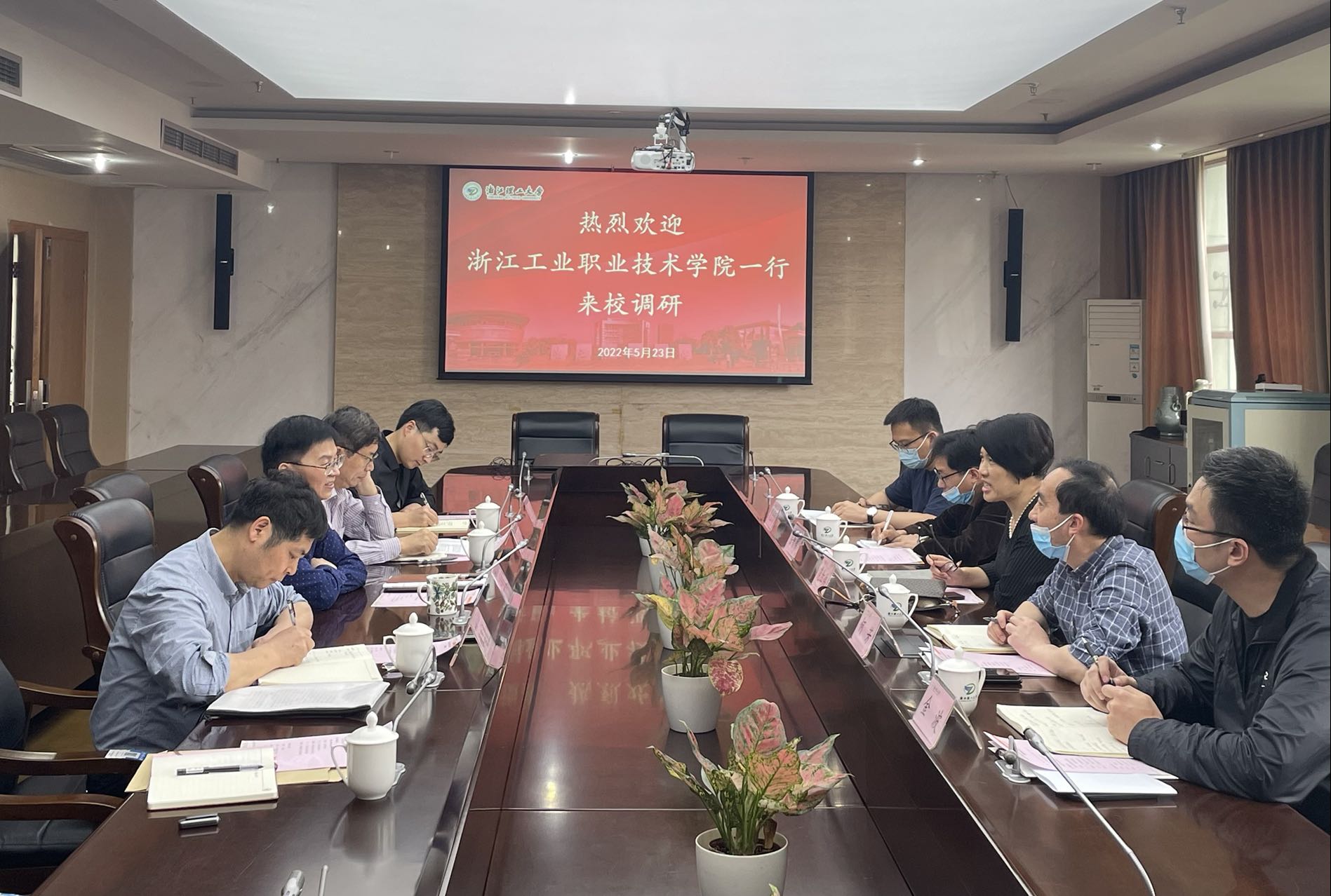 5月23日下午,浙江工业职业技术学院党委委员范红伟一行来校,调研分校区建设相关事宜,副校长王剑俊出席会议。