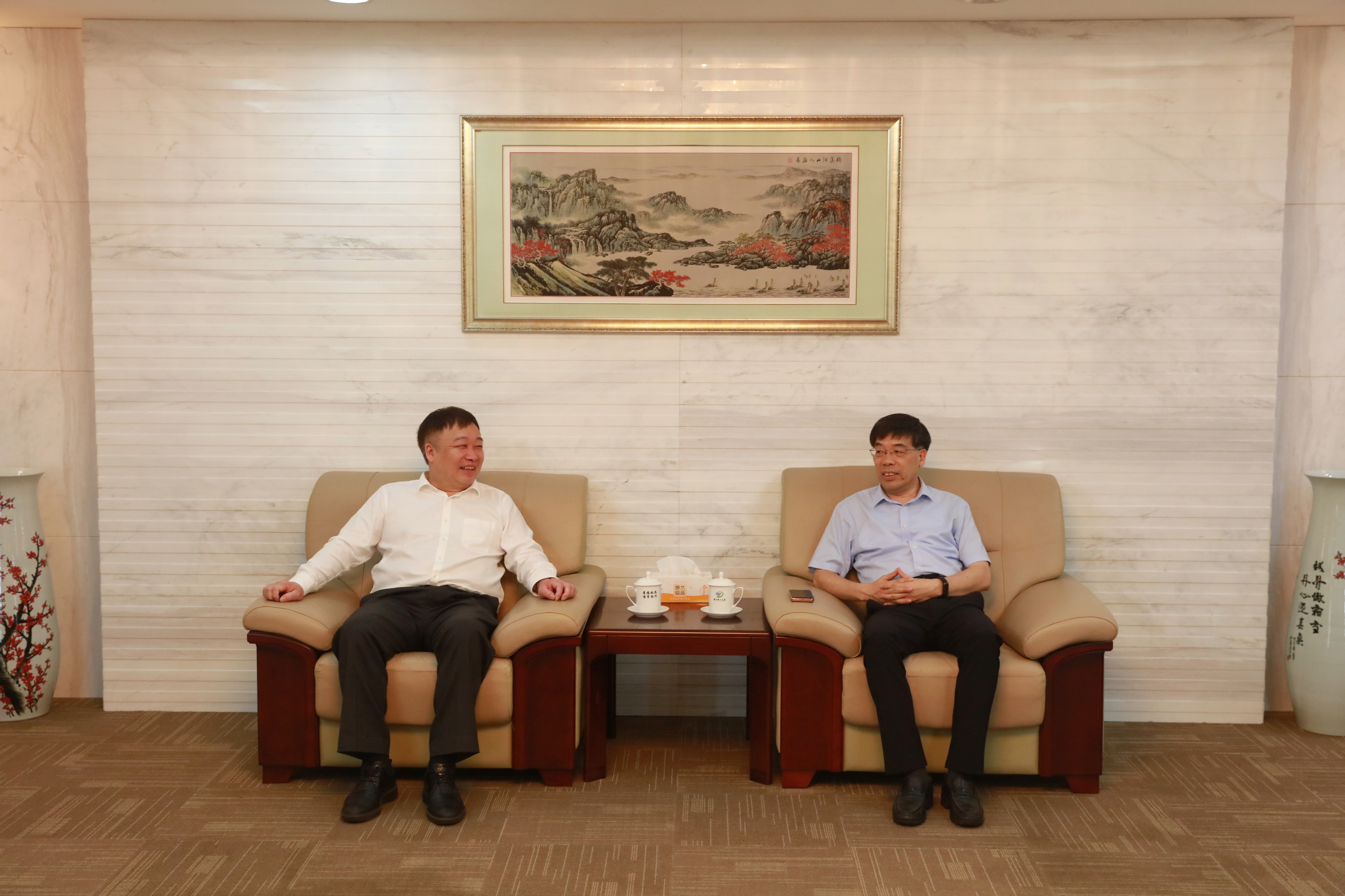 校党委书记吴锋民会见了温州大学一行,党委副书记姚珺陪同参观了学校丝绸博物馆。校长陈文兴、副校长陈文华、副校长许慧霞出席座谈。