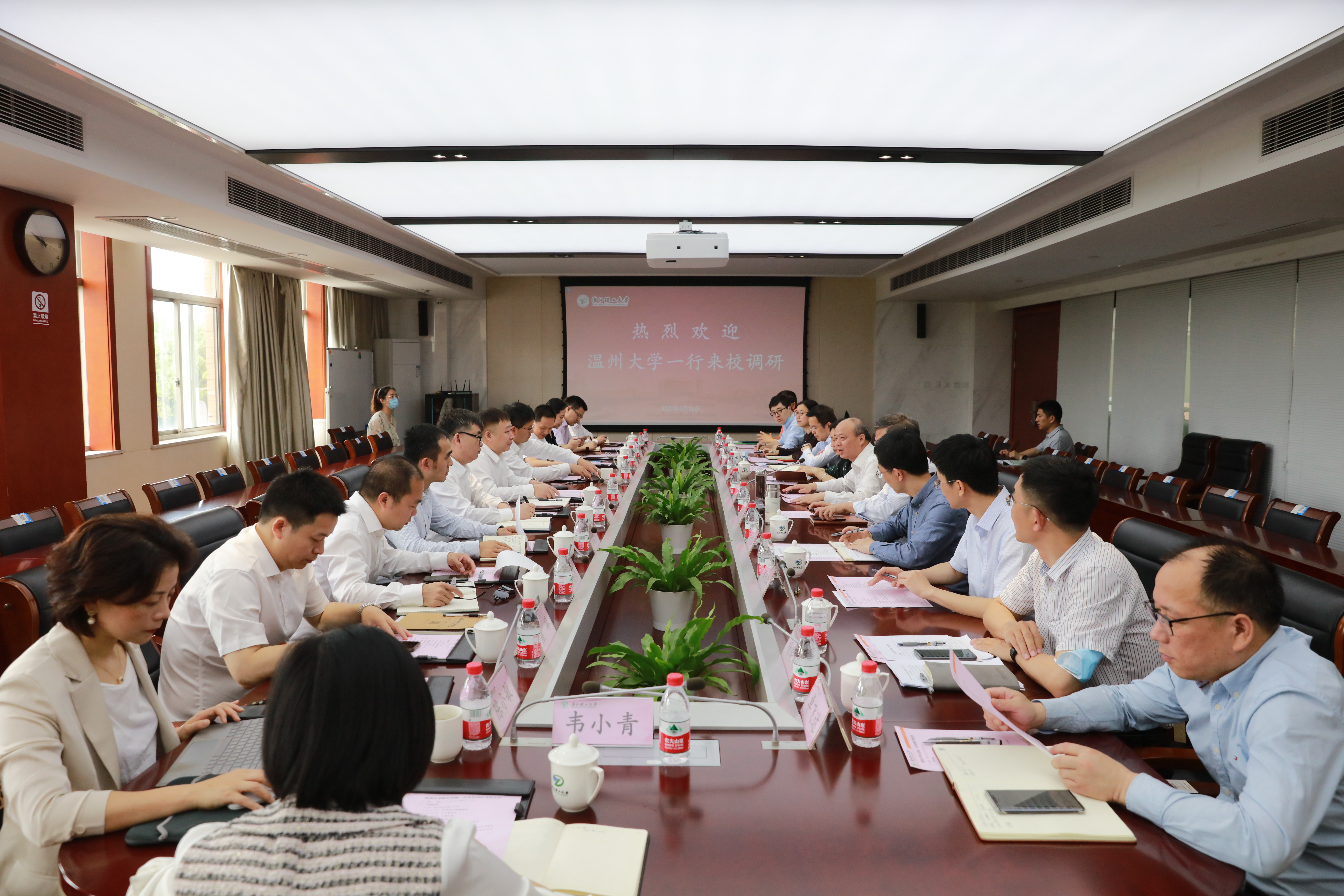 温州大学办公室、教务处、研究生院、科技处、人文社科处、地方合作处、人事处、财务处等部门负责人陪同调研,学校相关部门负责人参加会议。