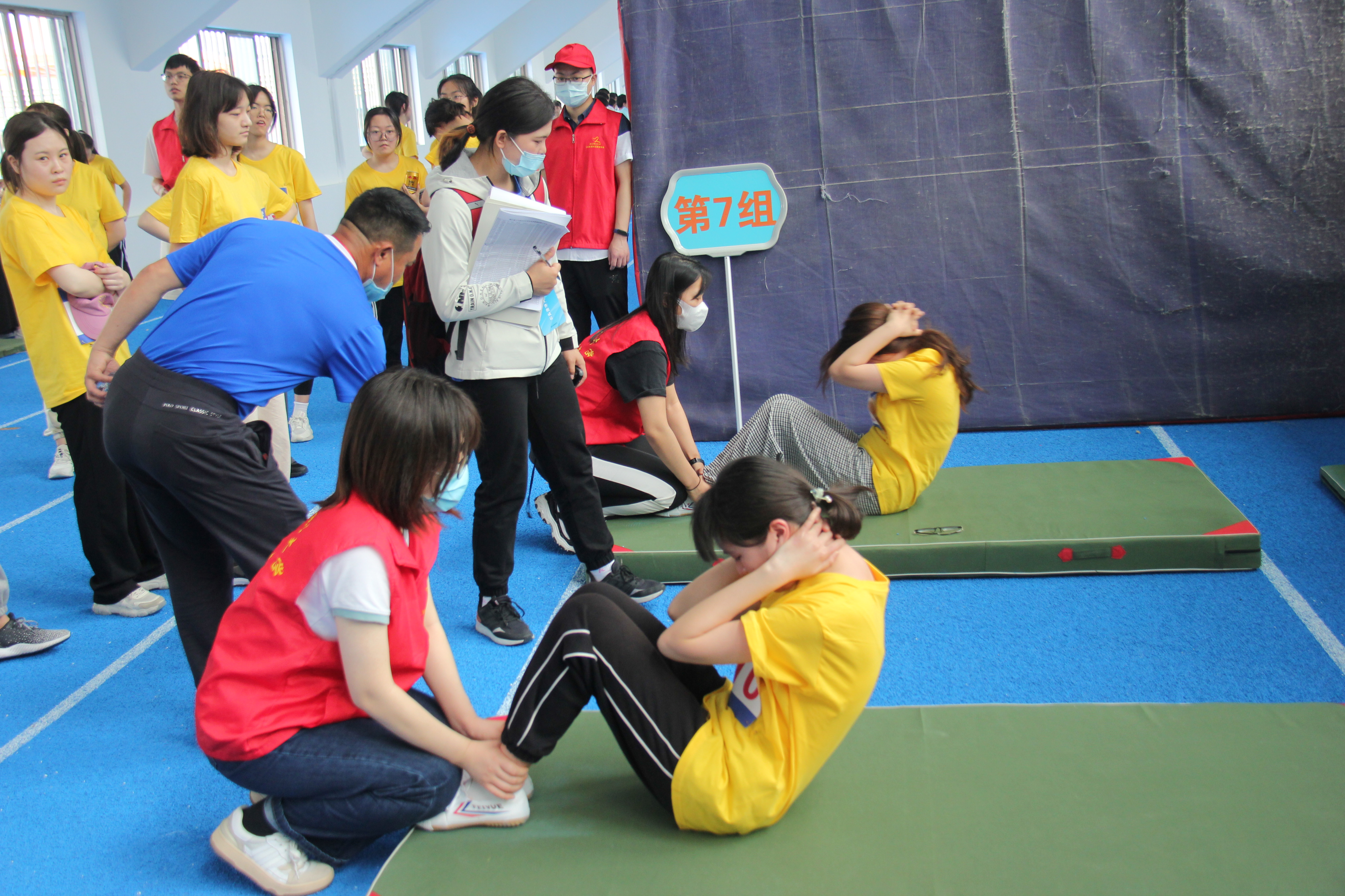 5月25日上午8:30抽测工作正式开始。相关校领导及职能部门、学院负责人及辅导员到场为学生加油鼓劲。体育教师为学生作了热身活动和测试项目的技术指导。