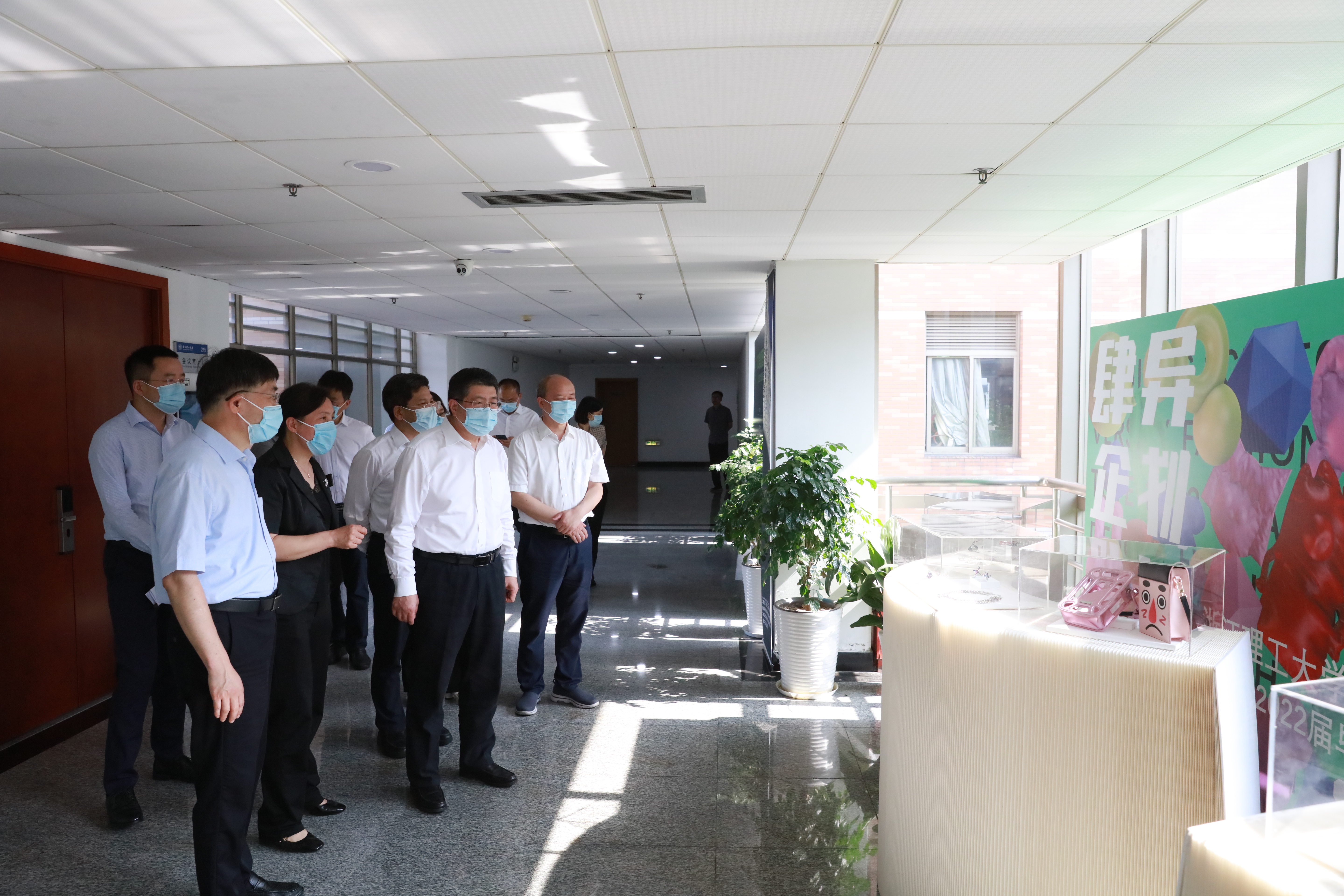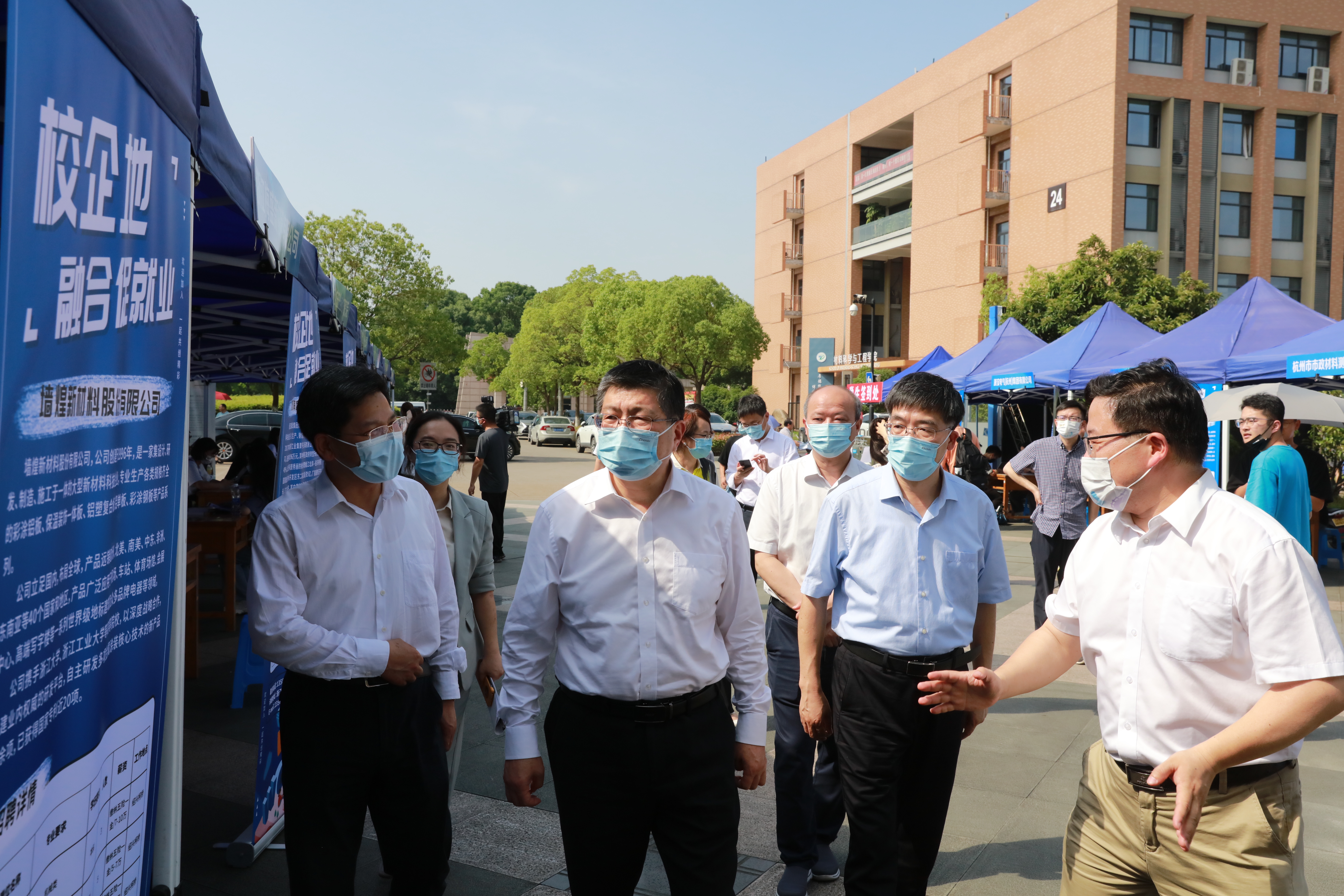 成岳冲一行先后视察了2022年校企地融合促就业专场招聘会、学校众创空间、第二届浙理时尚周毕业设计作品展,并认真听取了题为《聚焦“三个精准” 数字智治促就业》的专题汇报。