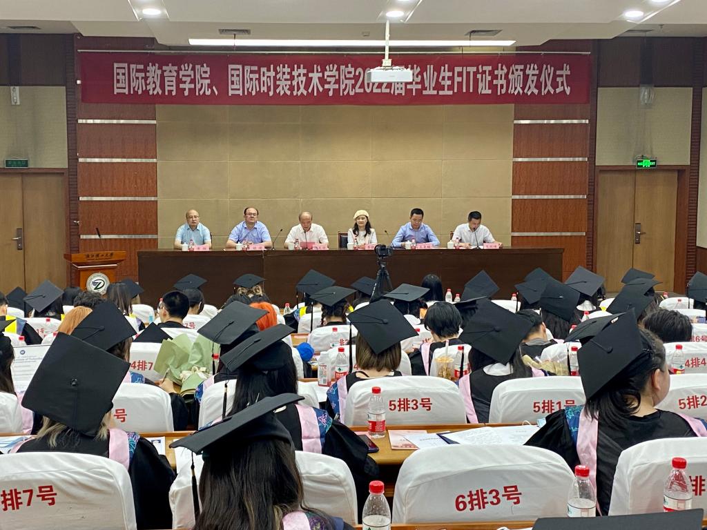 6月9日上午,国际教育学院、国际时装技术学院2022届毕业生FIT证书颁发仪式在行政楼二楼报告厅举行。校长陈文兴出席仪式。
