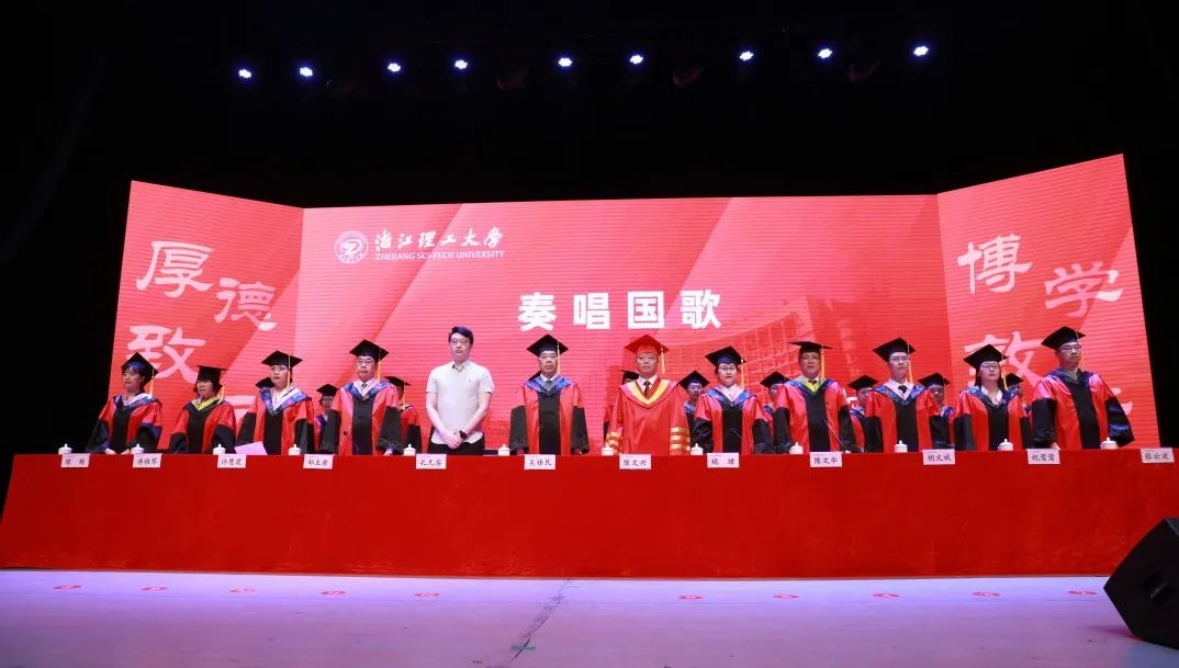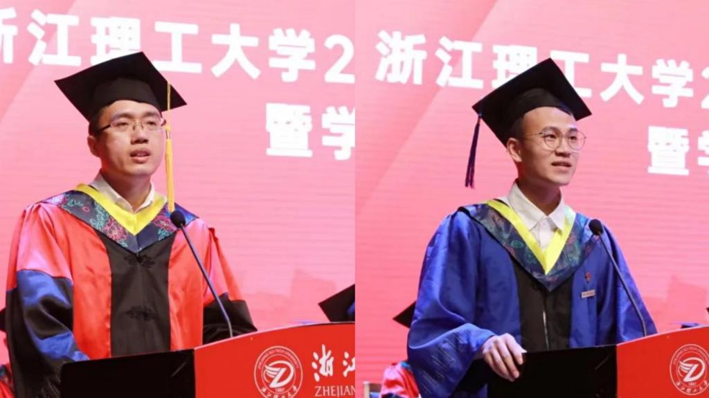 纺织科学与工程学院(国际丝绸学院)副院长余厚咏教授作为导师代表发言。他希望同学们在机遇面前主动出击,不犹豫、不观望;在困难面前迎难而上,不推诿、不逃避;在风险面前积极应对,不畏缩、不躲闪。在新征程中开拓出自己的一片新天地。毕业生代表、建筑工程学院硕士研究生陈柯宇,用“幸运”“情怀”“追梦”三个关键词,表达对母校的眷恋和对未来的期待,并决心与其他毕业生一道,肩负着时代使命,带着浙理的期许,继续努力向前奔跑,做新时代伟大征程上的追梦人。