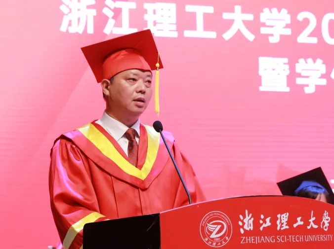 校长陈文兴院士为毕业生致辞。他首先代表学校向全体同学表示热烈祝贺,并向为了同学们的成长辛勤付出的老师、家长表示衷心的感谢。他向全体毕业研究生提出了三点希望。一是珍惜韶华,做激流涌进的踏浪者。用担当实干的工作作风,不尚虚谈,多务实功,勇于到艰苦环境和基层打拼,以“天将降大任于斯人”的胸怀和志气,把自己的发展融入时代和社会发展的大潮,在实现中华民族伟大复兴的赛道上激流涌进,踏浪前行。二是攻坚克难,做青春有为的奋进者。在抗击疫情这本鲜活的教科书中,感悟团队的力量和生命的可贵,汲取成长的力量,深刻体会“志不求易者成,事不避难者进”的人生道理。秉承“厚德致远、博学敦行”的校训,始终坚韧勇毅,在青春的赛道上奋力奔跑,争取跑出当代青年的最好成绩。三是勇立潮头,做时代发展的引领者。“求是笃实、创新创业”是浙理125年来的优良办学传统,多年来,理工大学的研究生中,走出了一批杰出的企业家和各类科技领域的行家里手,在创新创业的实践中成就了梦想。希望研究生们向优秀校友看齐,跑好创新接力赛,期待以优异成绩向母校报喜!