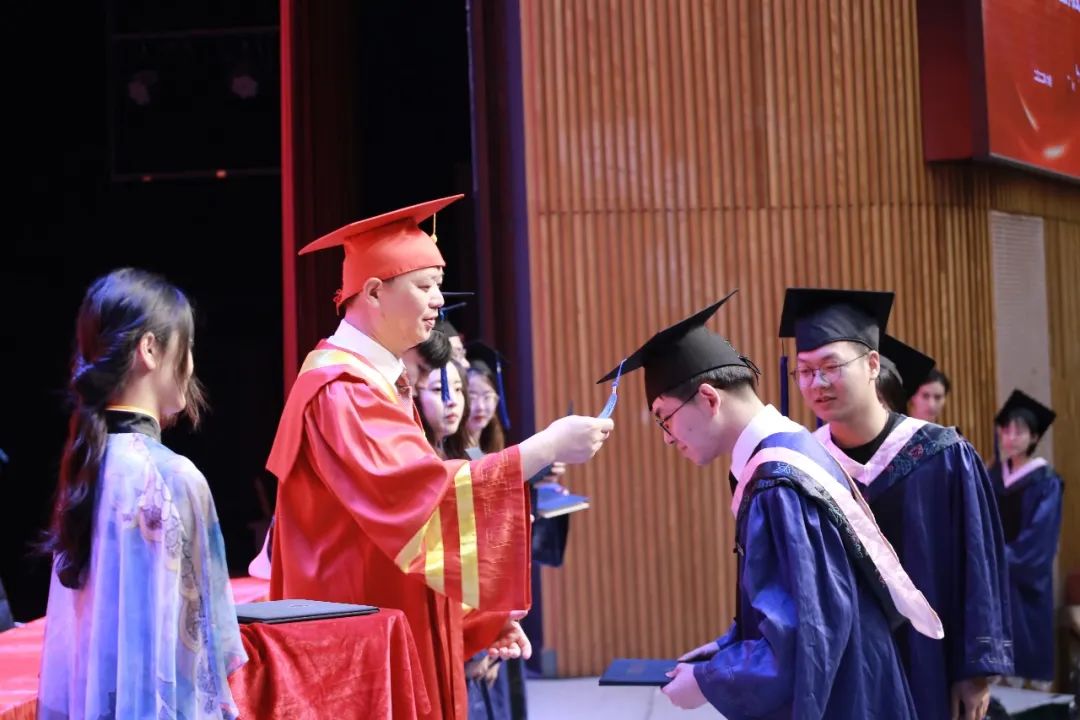 毕业典礼结束后,研究生院院长傅雅琴主持学位授予仪式。陈文兴为博士、硕士学位获得者逐一扶正流苏、颁发学位证书,并合影留念。家国使命在肩,母校嘱托在心,同学们将从新的起点出发,在如火青春中放飞人生理想,以奋斗之姿筑梦时代征程。