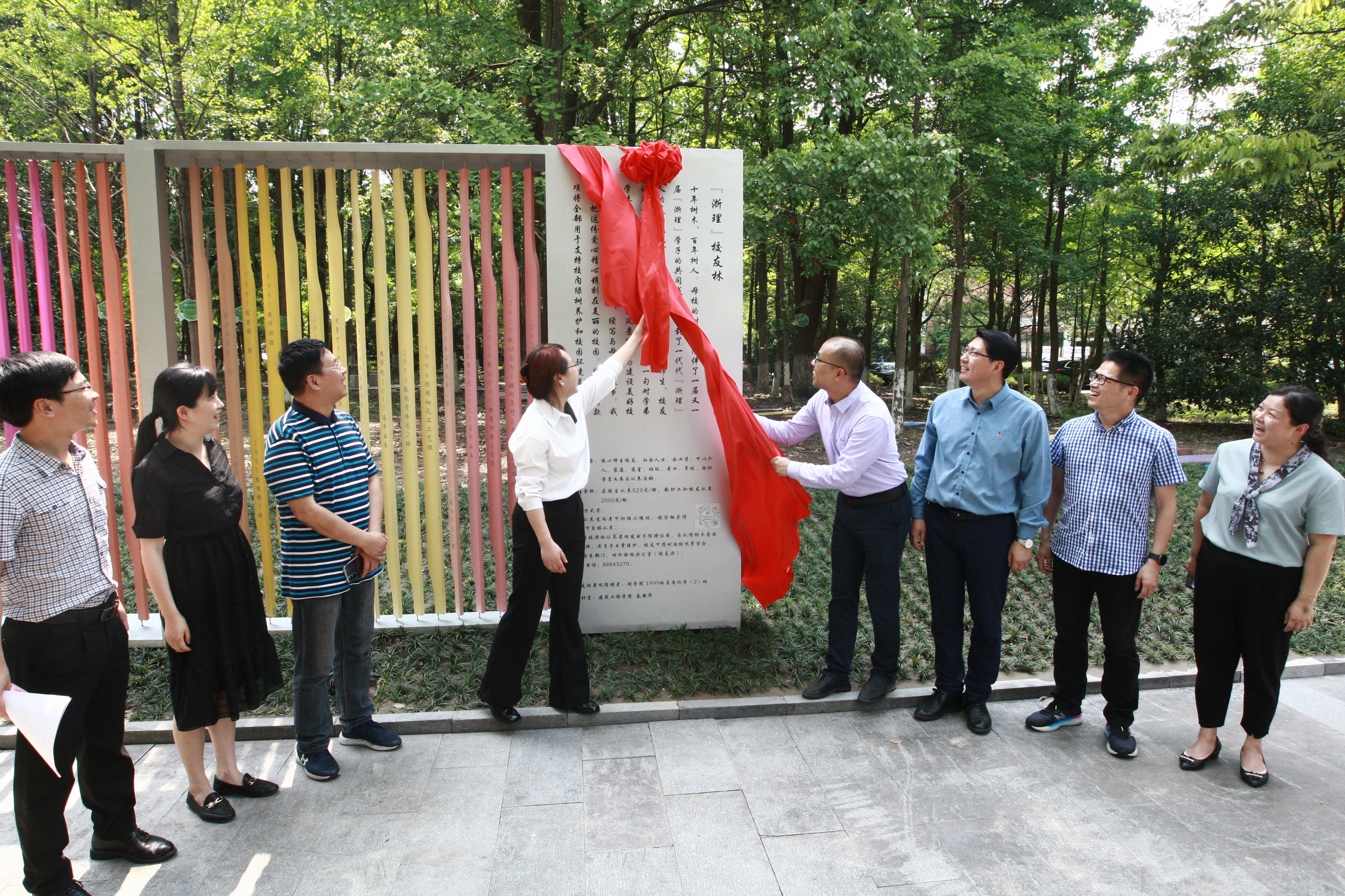 6月14日下午,mk官方网站_mk(中国)“校友林”文化景观揭牌仪式在15号楼前校友林举行。校党委副书记姚珺、1999级应用化学2班校友代表鲍玥裕共同为“校友林”文化景观揭牌。