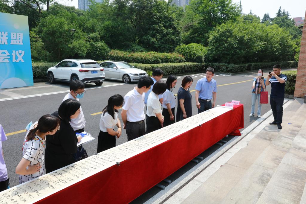党委宣传部、组织部、继续教育学院等相关负责人出席开幕式。为期两天的百米书法长卷巡展吸引了全校多个职能部门及学院师生前来观展。