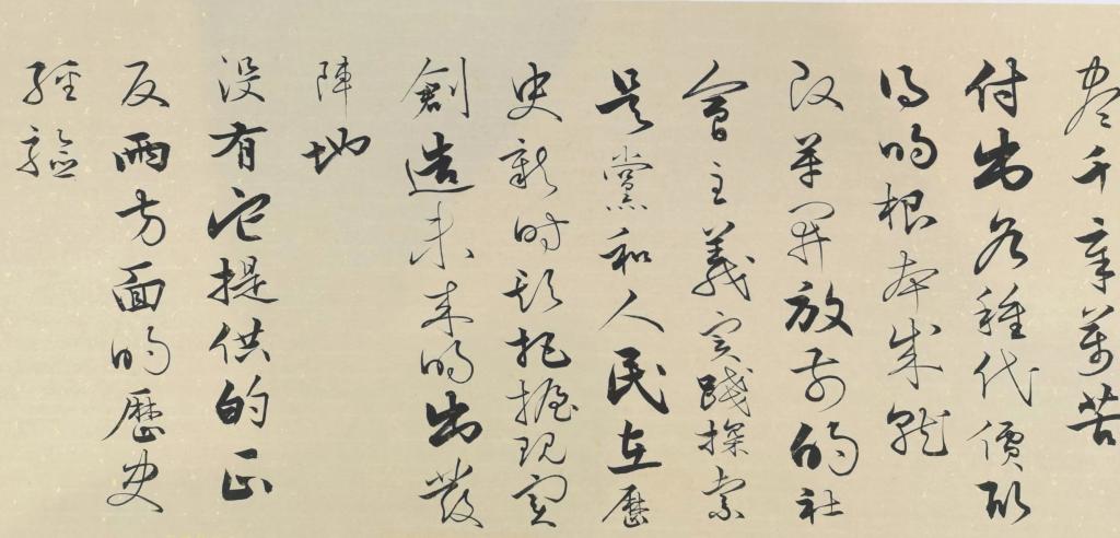 百米书法长卷是陈洪标历时三年、六易其稿而成。采用多种书体穿插,竖排现代诗歌体例,精心创作了《中国共产党章程》总纲和《论中国共产党历史》两幅百米长卷,其中一幅8200多字100米长,一幅12000多字120米长,与中国十大传世名画《千里江山图》的图卷相结合。