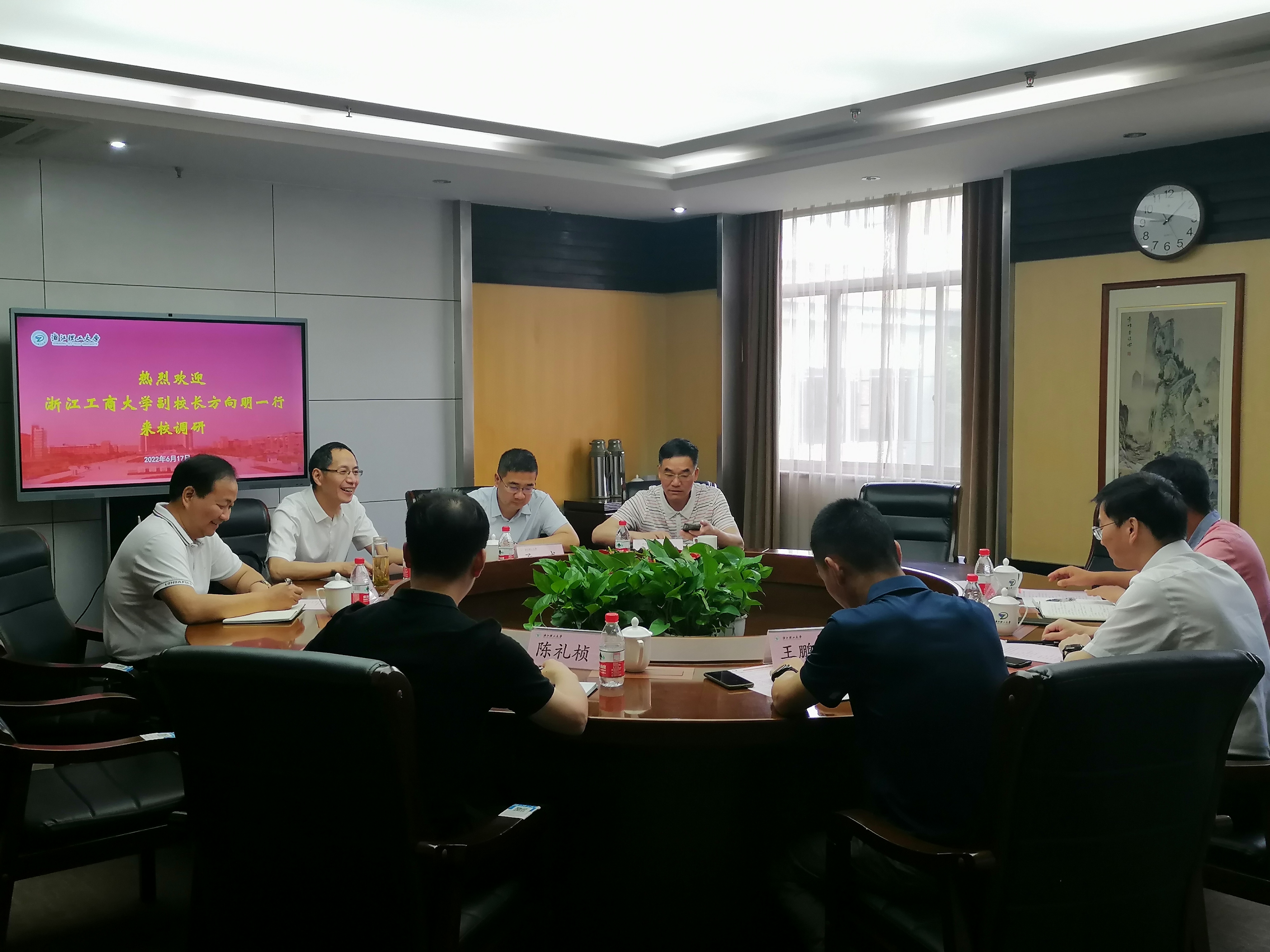 浙江工商大学公共事务管理处、保卫处和后勤服务中心等部门负责人陪同调研,我校相关部门负责人参加座谈。