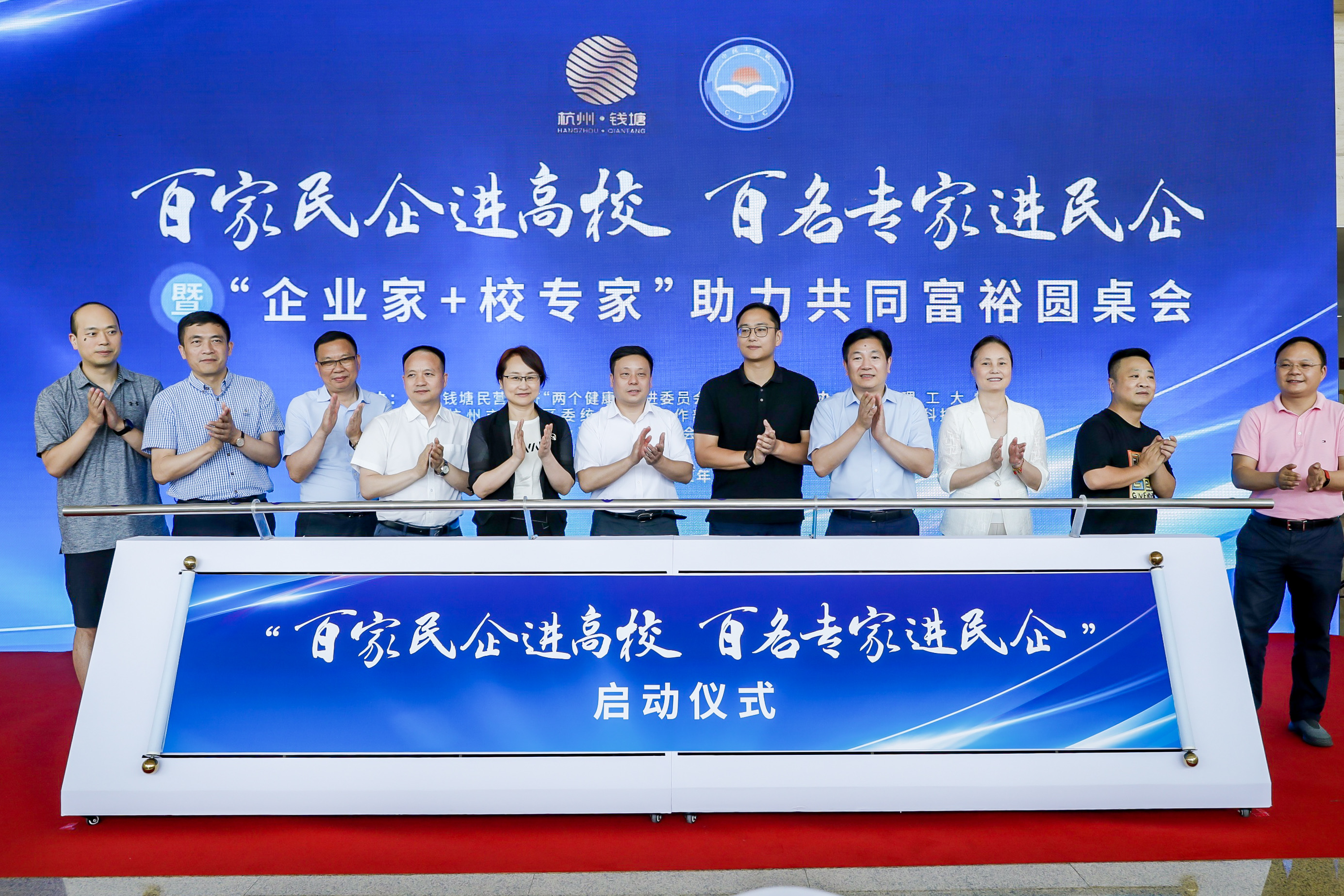 6月16日下午,由钱塘区统战部主办、我校党委统战部协办承办的“百家民企进高校·百名专家进民企”启动仪式在我校国际会展中心举行。杭州市工商联党组成员、副主席周华,浙江省教育厅统战处副处长岑超超,浙江省工商联社会服务部副部长李峰到会指导。区委常委、统战部部长周伟东致辞。我校党委副书记姚珺出席活动并讲话。
