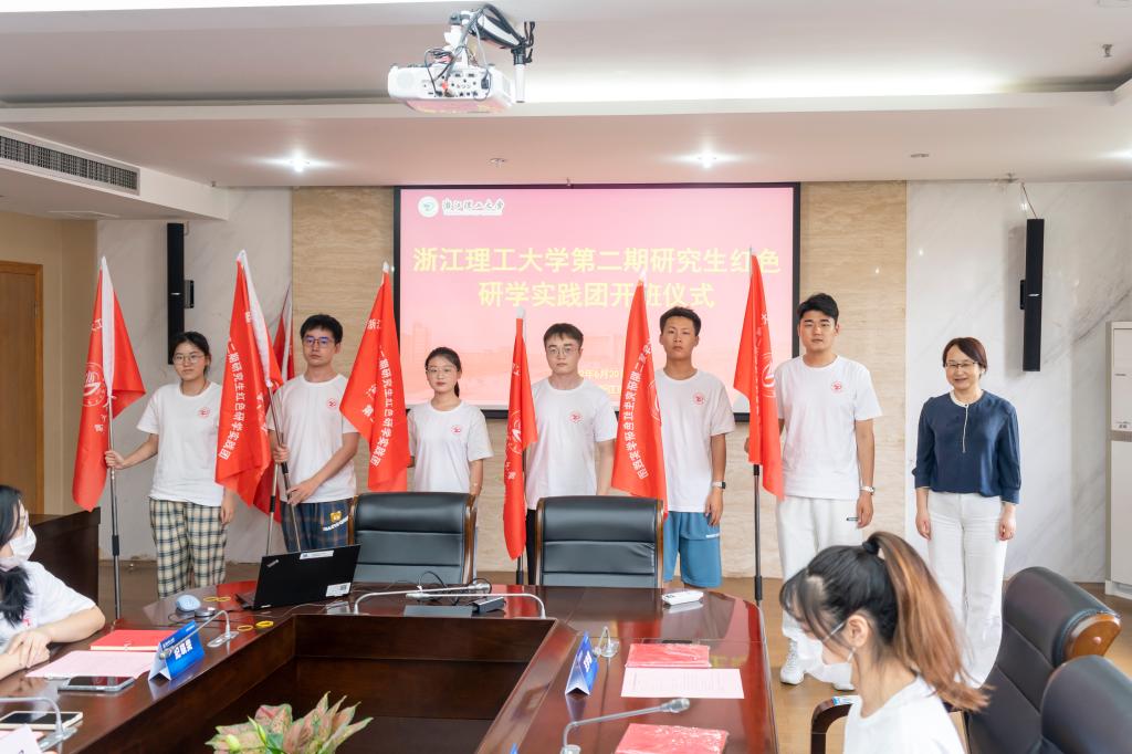 姚珺讲话。她表示,今年是政治大年,浙江省第十五次党代会于6月20日开幕,下半年党的二十大即将召开。今年也是浙江省建设共同富裕示范区的元年。此时,我校举办研究生红色研学实践活动,很有意义也很有必要。研究生红色研学活动通过红色文化课程讲授、红色基地浸润式现场教学和实践宣讲调研等多形式教育实践活动,让同学们学习党的历史,了解红色故事,感悟革命精神,在发扬红色传统、传承红色基因的同时,不断丰富自我思维模式,养成多元思维习惯,提升决策的科学性与有效性。